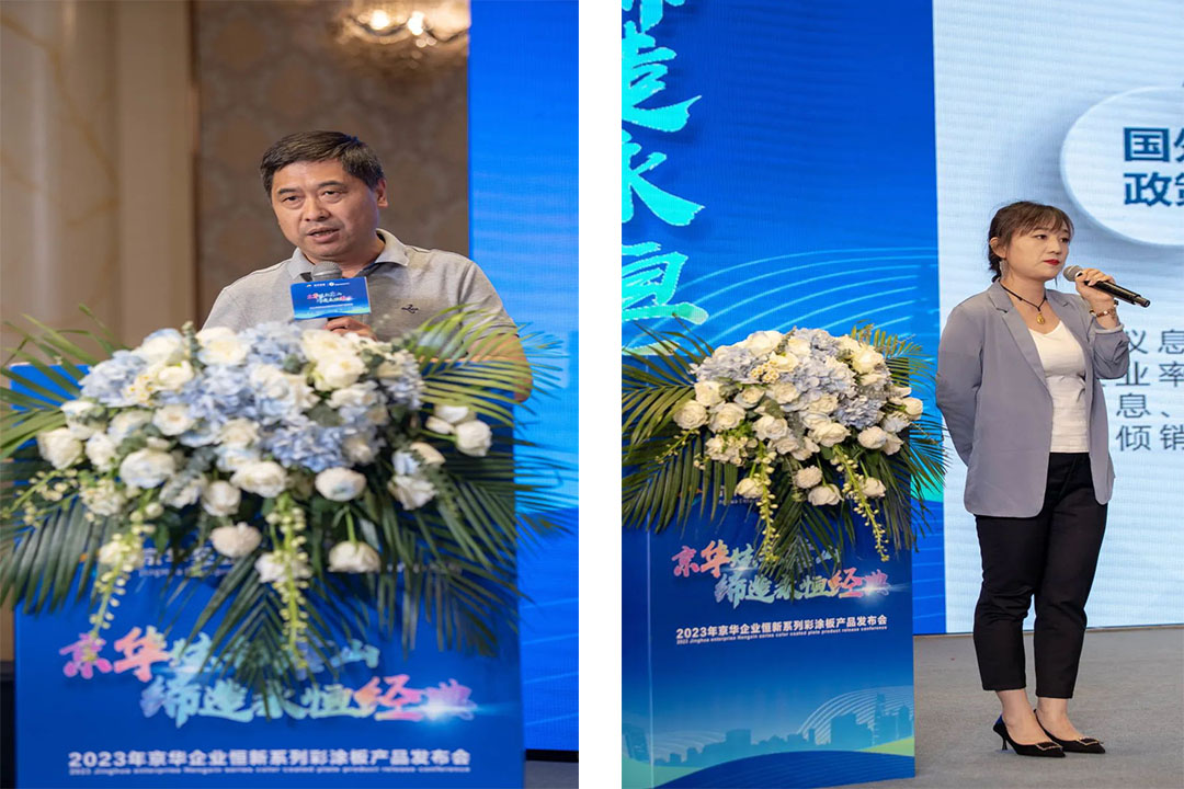 深耕合作、共謀發(fā)展。會議聯(lián)合主辦方獨家代理唐山市豐潤區(qū)營盛彩鋼有限公司董事長周小林先生、總經理周立揚先生出席會議。周總在會上發(fā)表致辭,講述了與京華企業(yè)的友好合作歷程以及對京華企業(yè)產品質量的高度認可和贊揚,并表示將繼續(xù)與京華企業(yè)展開深度合作,共同推動涂鍍板材行業(yè)的不斷發(fā)展。