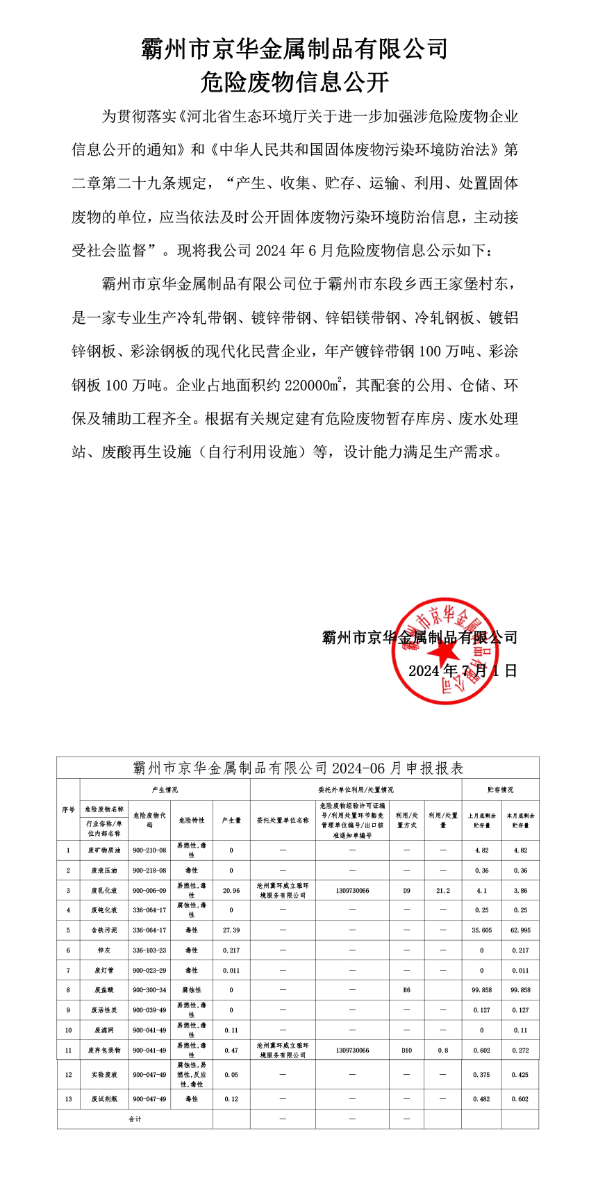 下一條:24年7月危險(xiǎn)廢物信息公開(kāi)-霸州市京華金屬制品有限公司
